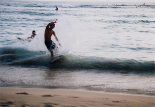 これほどまでの波打ち際でフィンが折れるのではと心配した・・・。